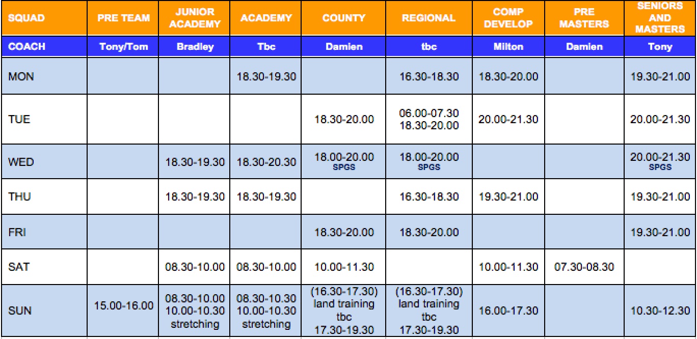 Unfortunately, we have two pool late starts coming up due to waterpolo fixtures. One is this coming Tuesday 23rd of April and the other the following Tuesday the 30th of April. We will have access from 19.30, so will divide the time equally between the squads. County and Regional will swim from 19.30 to 20.30 and CDT and masters from 20.30 to 21.30.